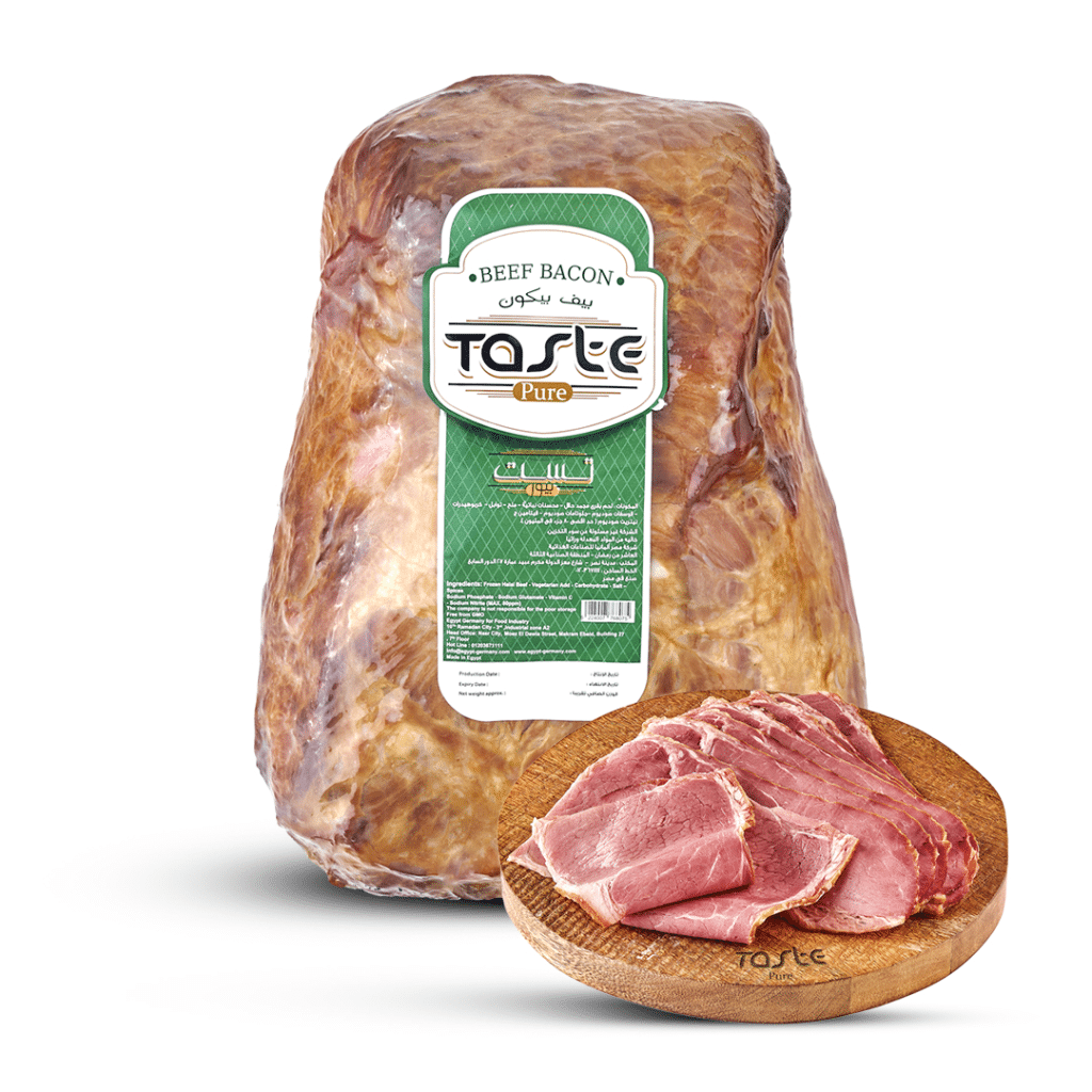 Smoked beef bacon with perfect fat content for enhanced flavor, one of the best-selling products for restaurants and hotels.